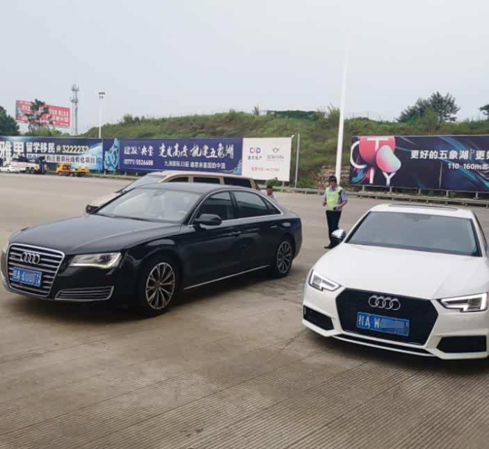 16点30分左右,一黑一白两辆桂A牌奥迪小轿车引起了民警的注意,因为这两辆车在经过高速测速点时,行车速度非常快,被高速路面上的测速仪拍了下来。待两辆车到达南宁南收费站检查点时被交警拦停。