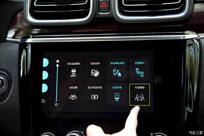 车道辅助也是一个很不错的L2级别配置。在航行界面下,它显示在全液晶仪表盘的左侧。这个功能有人说不舒服,会跟自己“掰手腕”,但我觉得还行。主要是有时候难免遇到需要一边开车一边看手机之类的操作,这个配置就可以帮助你在削弱方向盘握力的短时间内,确保车道不偏离,绝对是很关键的安全配置。