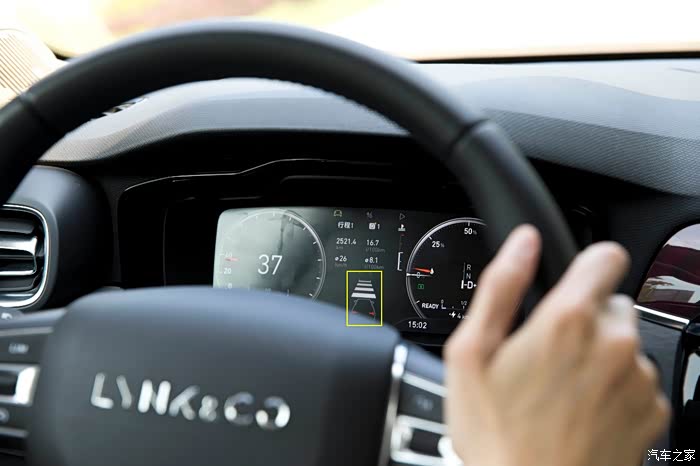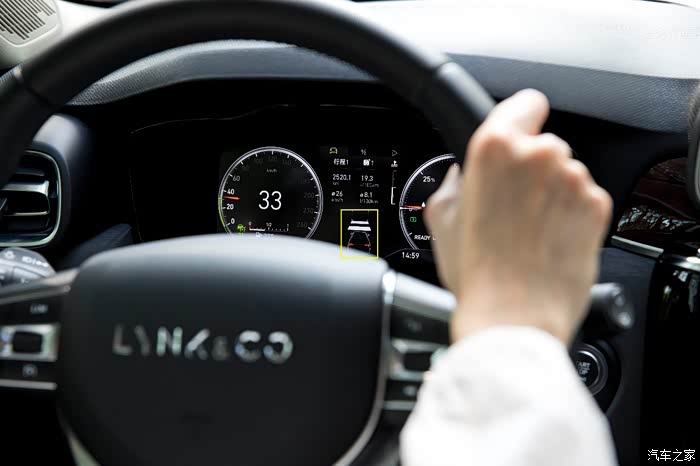 车身四周都是雷达,会车从容不迫……实际上,我觉得雷达预警也是可以放到全液晶仪表盘上的,期待未来领克新车可以实现。