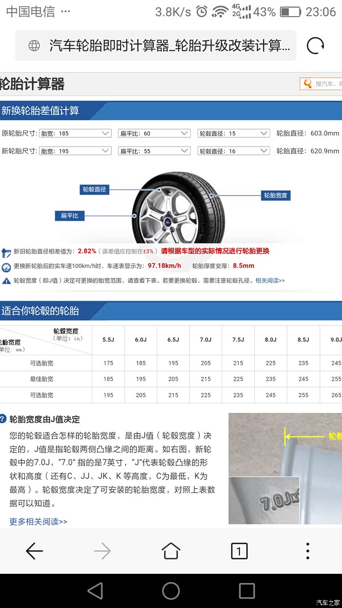 美中不足,就是轮胎是55扁平率,这样算起来,就比原装轮胎大差不多3%。
