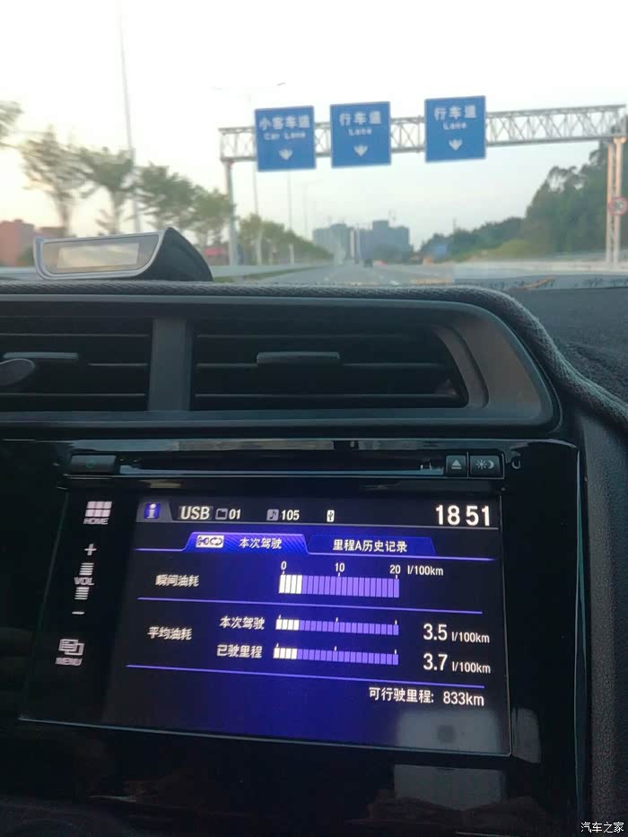 高速油耗表显5.2L。