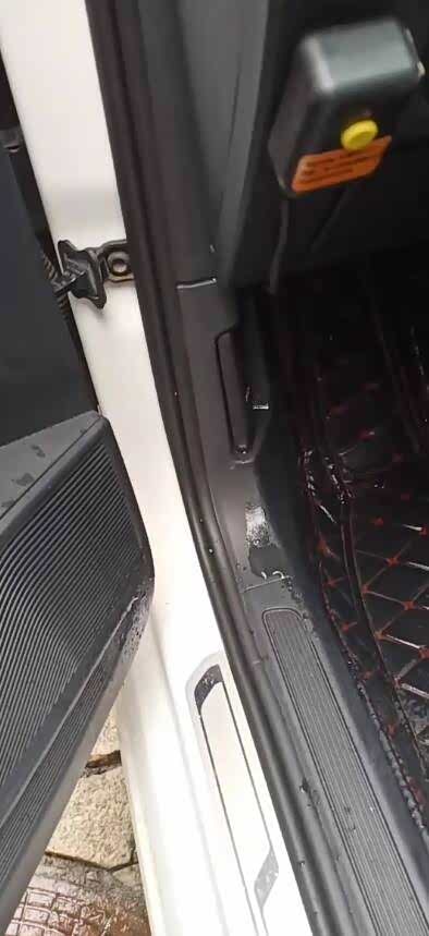 王女士说,开始她也没多想,以为是外面雨下得大,水顺着门缝渗进来了。谁知两天后发现,即便只是下小雨,驾驶室下方脚垫还是湿透了。她和爱人杨先生仔细找了找才发现,驾驶室左下侧门边合页旁正滴滴答答地漏水,夫妻二人这才联系了4S店检修。