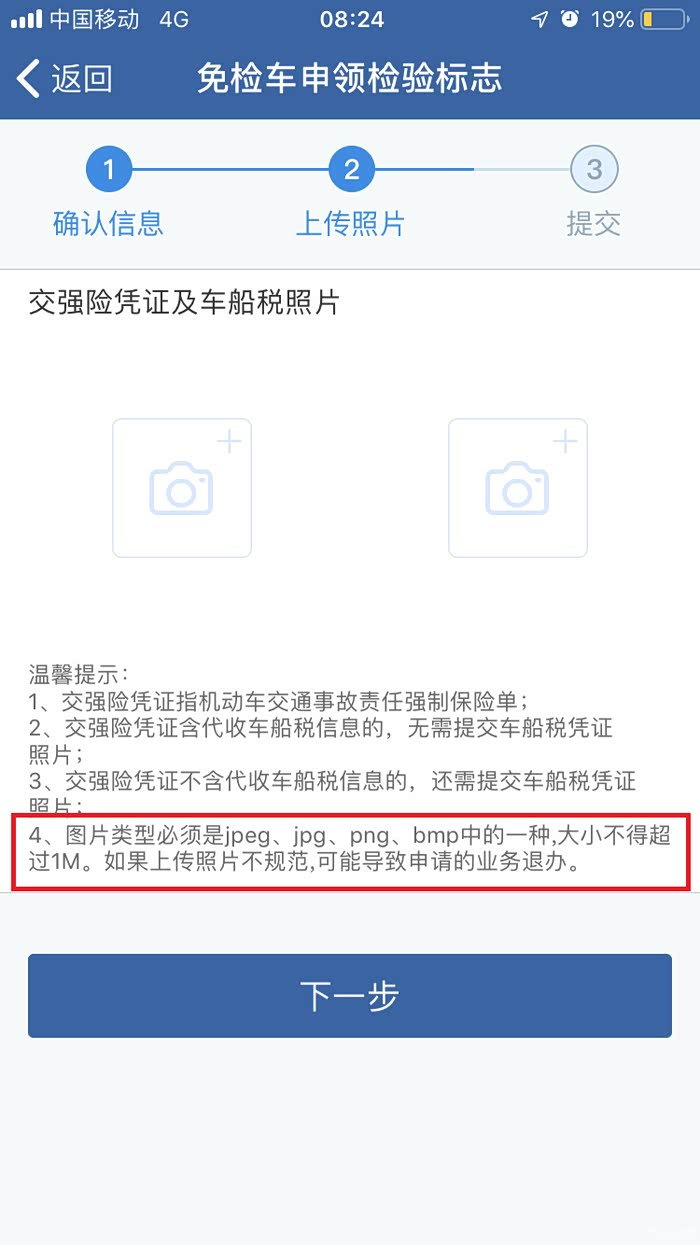 交强险保单的图片格式是有要求的,我直接使用的是手机拍摄的,上传没有问题。