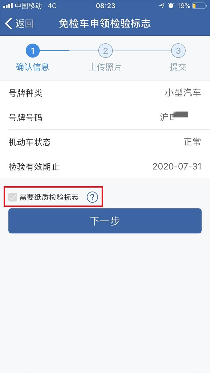 需要纸质检验合格标志的车主,在申请界面可以勾选下。