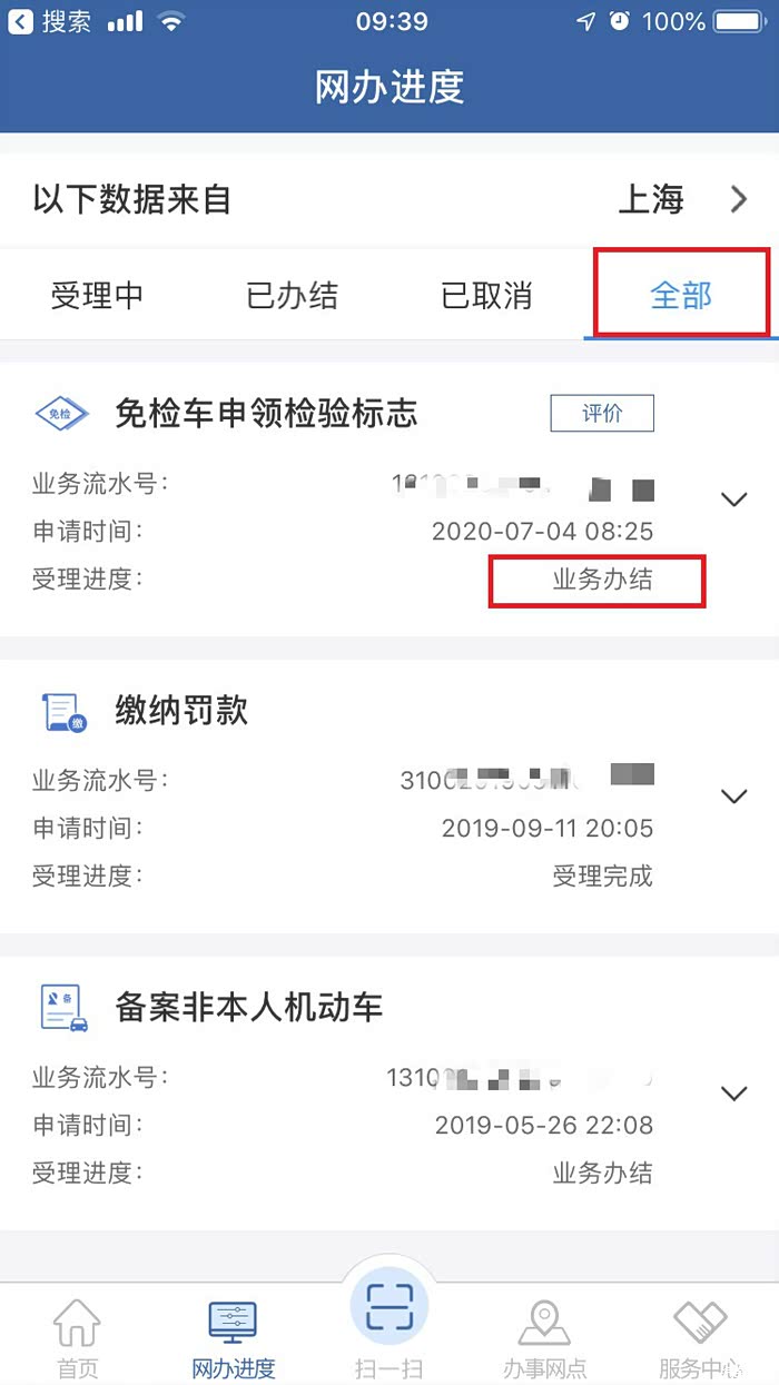 可以通过网办进度栏查询业务处理情况。