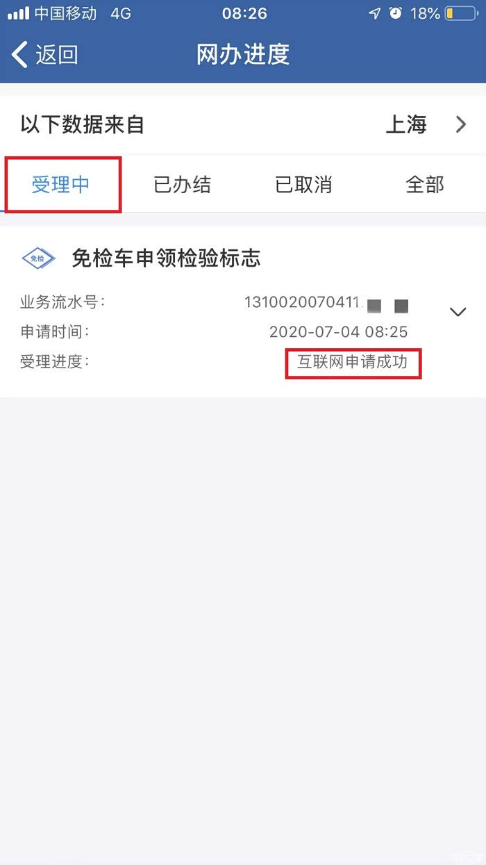 从提交申请到受理,再到办理完成,几乎是一气呵成。在此界面还可以看到车牌号码以及取件方式。