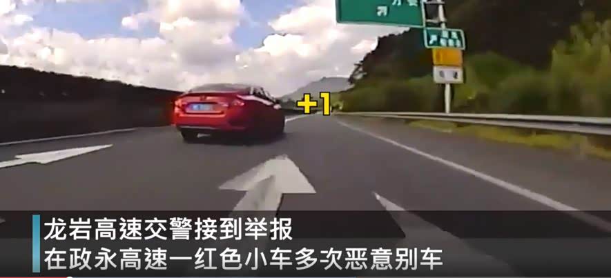 龙岩高速交警支队六大队接到举报称,其在政永高速漳平至雁石路段被一辆红色小车恶意别车,举报人同时提供了行车记录仪视频作证。