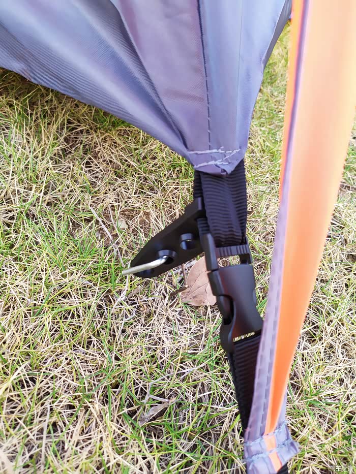 内帐和外帐之间使用橡筋+扣具固定,保证了牢固的同时增加了空隙,这样有利于空气的流通,双层的设计可以有效的防雨和空气流通