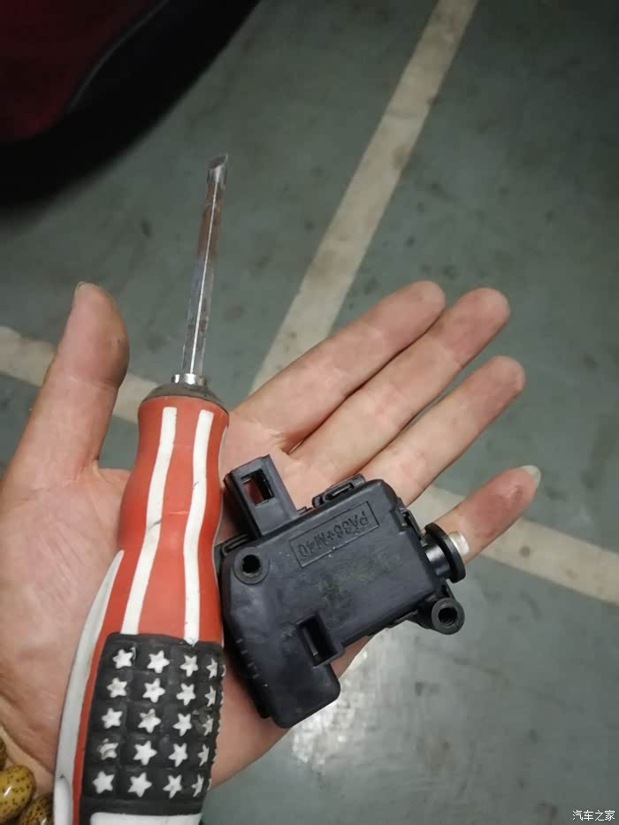 安装完以后,手是不堪入目了.退下来的电机。一个月前我这个小六开始出现了问题。尾门开始发病,偶尔的就不能打开了,无奈之下从里面用螺丝刀撬开了网上盛传的危急时刻尾门逃生的小盖子。