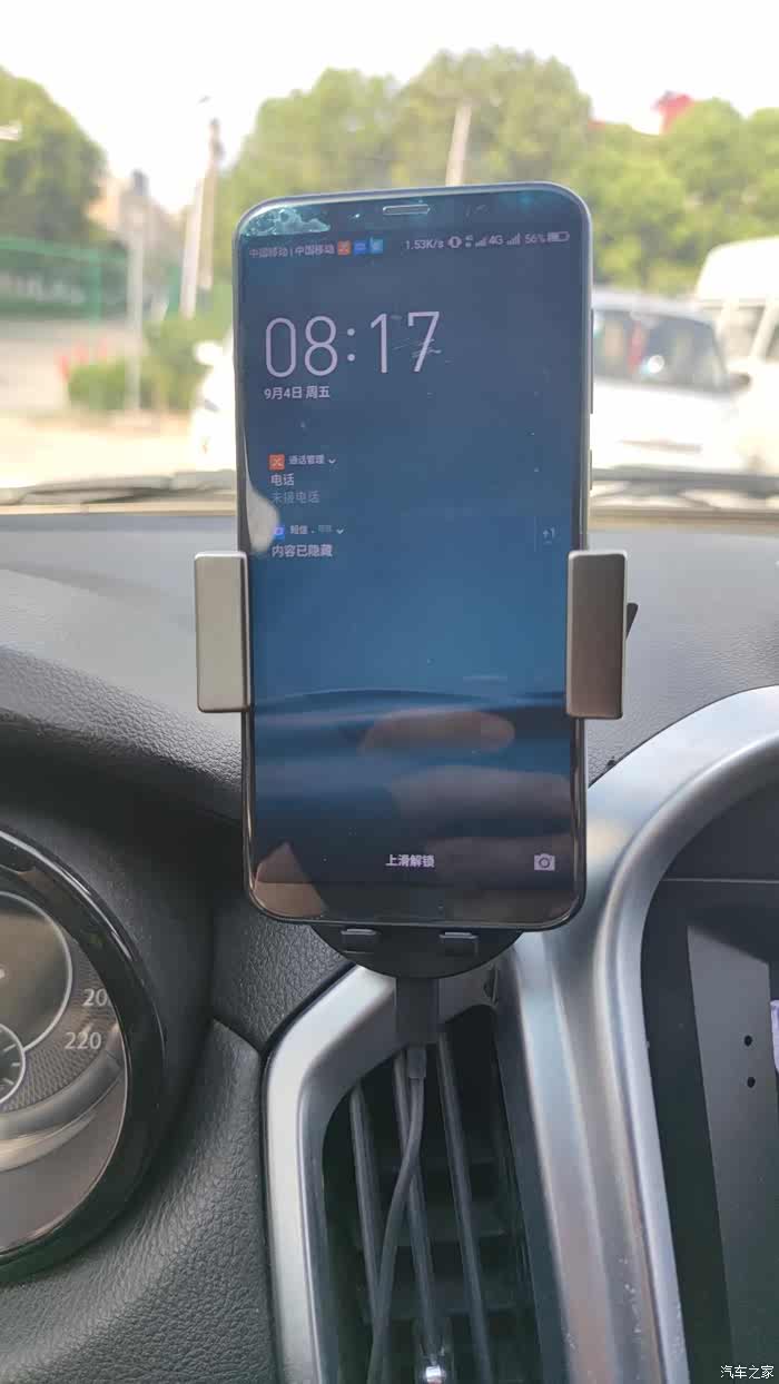 上车刚刚好这个位置贴着不影响视线,也可以直接用卡簧固定在出风口上,不过我个人不喜欢挡着出风口,不过应该每台车都很容易找到合适的位置。