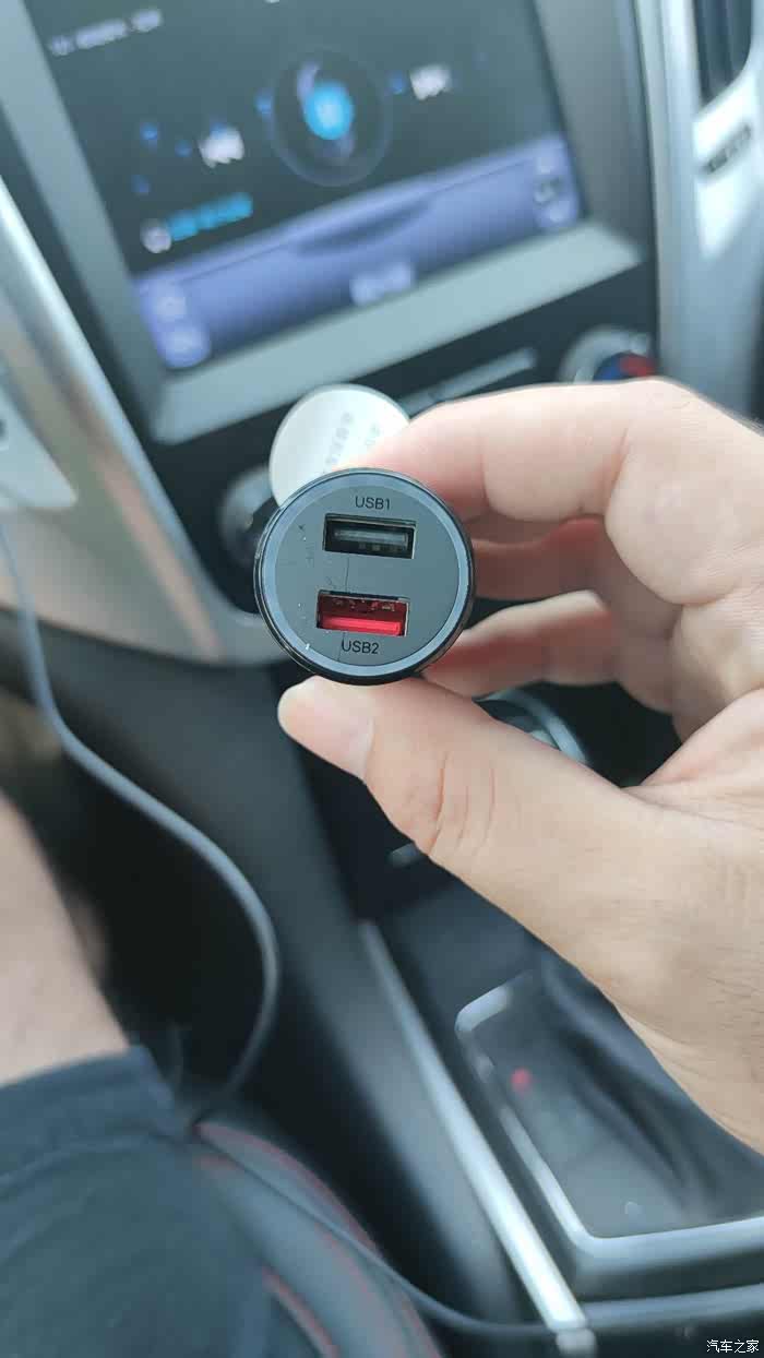 随设备自带的点烟器充电头一样带有提示,使用原装接头的红色插孔,这样应该是可以使用充电器的最大充电功率,再次点赞。