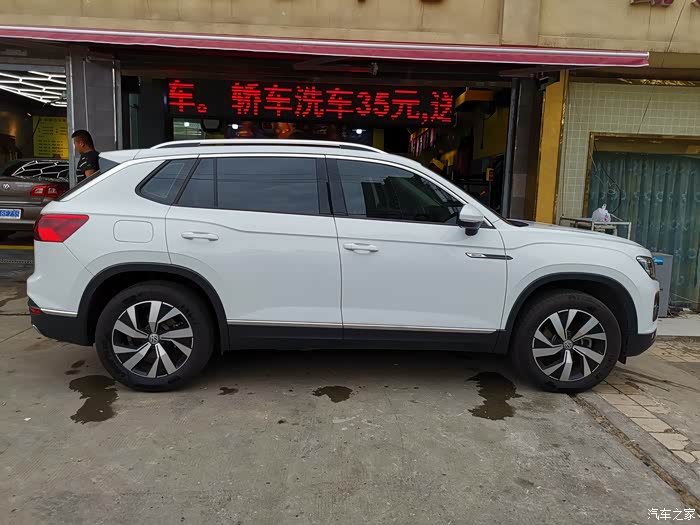 探岳的侧面线条依然还是很漂亮,只是这个轮毂不得不吐槽一下,相当的丑,无奈囊中羞涩,否则必换,哈哈哈