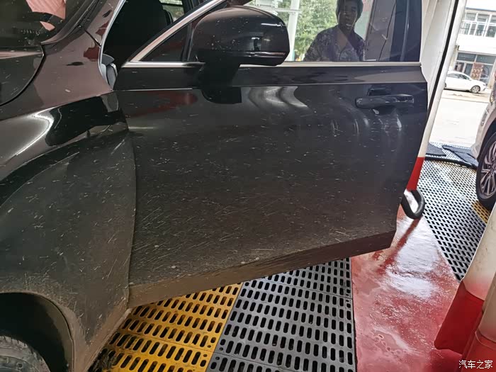 车门上也全都建的是泥,这种情况下自己来洗车是非常费劲的,而且特别容易刮伤车漆