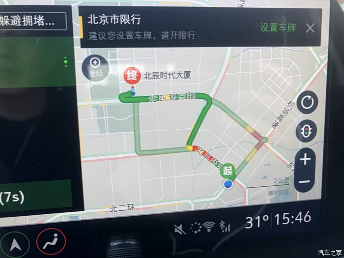 导航从东二环东直门到北四环的北辰大厦,打开导航一看不到10km,路况还算不错……