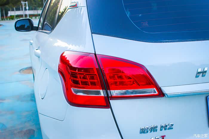 小二的尾部层次分明,枣红色的尾灯,镶嵌在洁白的车身上,很醒目!