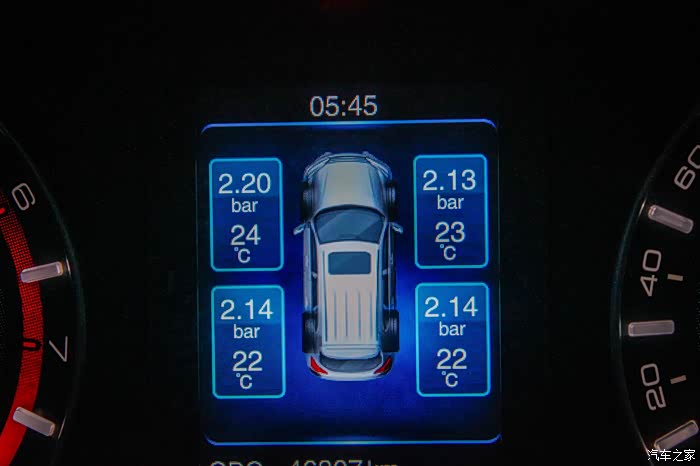 胎压监测,实时监控胎压,进入秋天气温低了,胎压也降低了,看来需要打打气了。