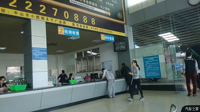 三、拿着拍照员给的纸条到大厅①号窗录入信息,所需资料有身份证、行驶证。拍人头照,签名四、拿到资料到②号窗口交钱(检测费,200元),然后到一边等候下一个窗口叫名字(等检测人员把车子开到检测线上监测完成后会把钥匙交到③号窗口。虽然是在里面等候,但我还是留意到了车子是先开出了监测站大概10分钟左右才开回来上监测线的,期间不知道开去哪里了)