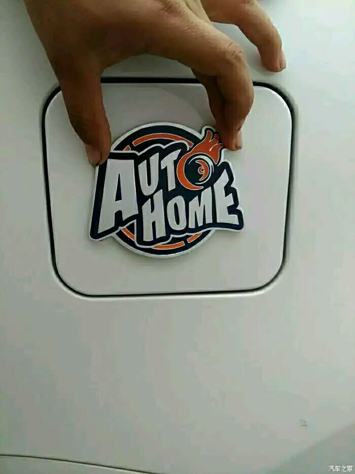 本来想贴在油箱盖的,因为这里比较平,可是车标有一点不平