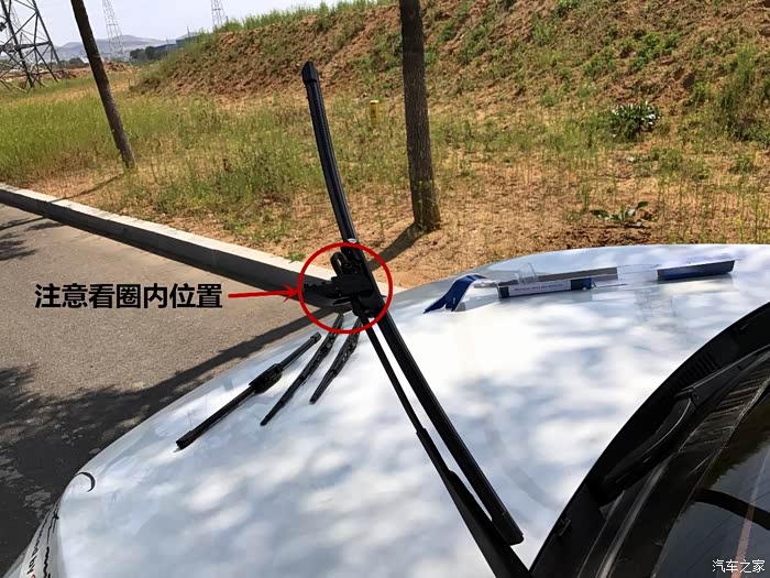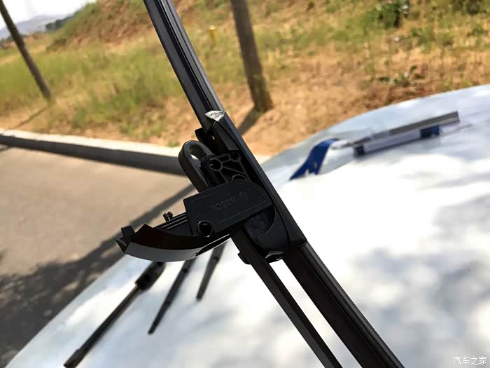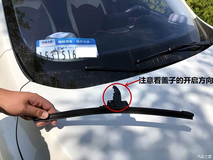 拉近照一张给你们看看,无骨雨刷的那个盖子开启方向以及安装方向。