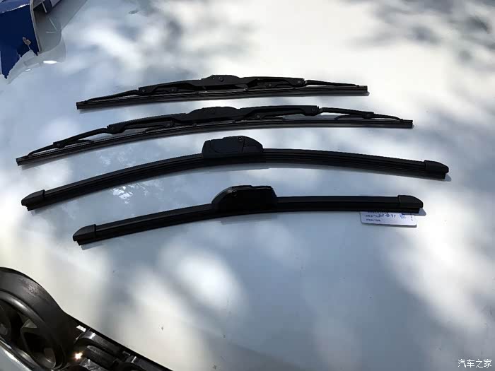 既然打算换,那么就先问问已经换过的车友“堕天使”用的什么牌子什么型号的。经过询问得知,咱们的雨刷片是22寸和17寸,U型。我自己去扒着雨刷看了下,在雨刷片的头上写着具体多少毫米,22寸雨刷是550MM,17寸是425MM。