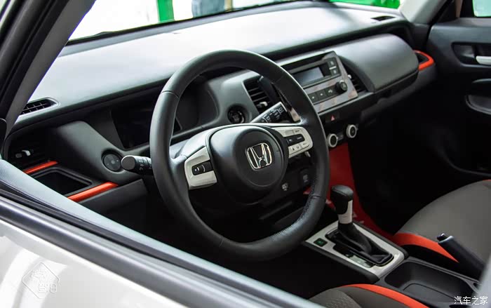 和外观一样,飞度的内饰也是采用的双色拼配,皮质与织物混搭,看起来没那么廉价。