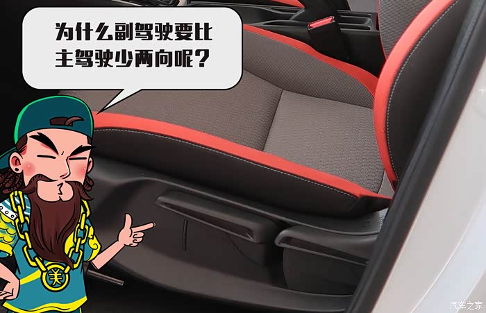 主副驾驶位座椅采用了手动调节,主驾位提供6向手动调节,副驾位提供4向手动调节。