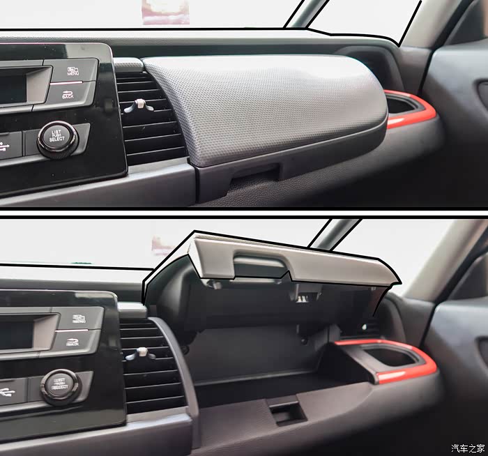 关关同样喜欢的还有上下双开分体的手套箱,在储物上有了更好的功能分区,增加了便利性。