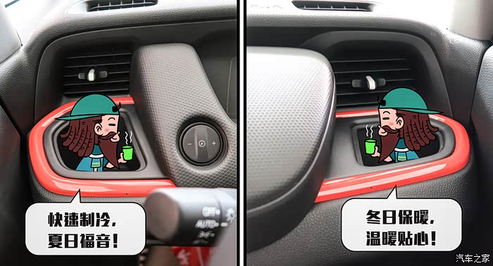 关关挺喜欢前排空调出风口处的两个杯架,最棒是这个杯架可以给饮料制冷或保温,简直是人性设计。