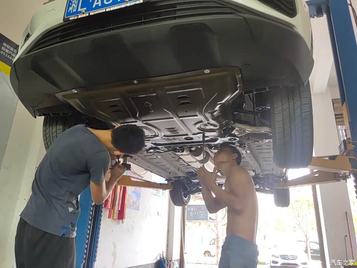到汽修店,把车升起来,可以看到发动机。还算干净,这几个月,我们这边没怎么下雨。