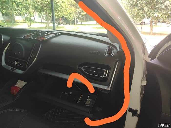然后就是走线,从挡风玻璃上面的缝隙走到车右边,沿着A柱下来,贴着副驾驶,从置物箱后面接到取电口。
