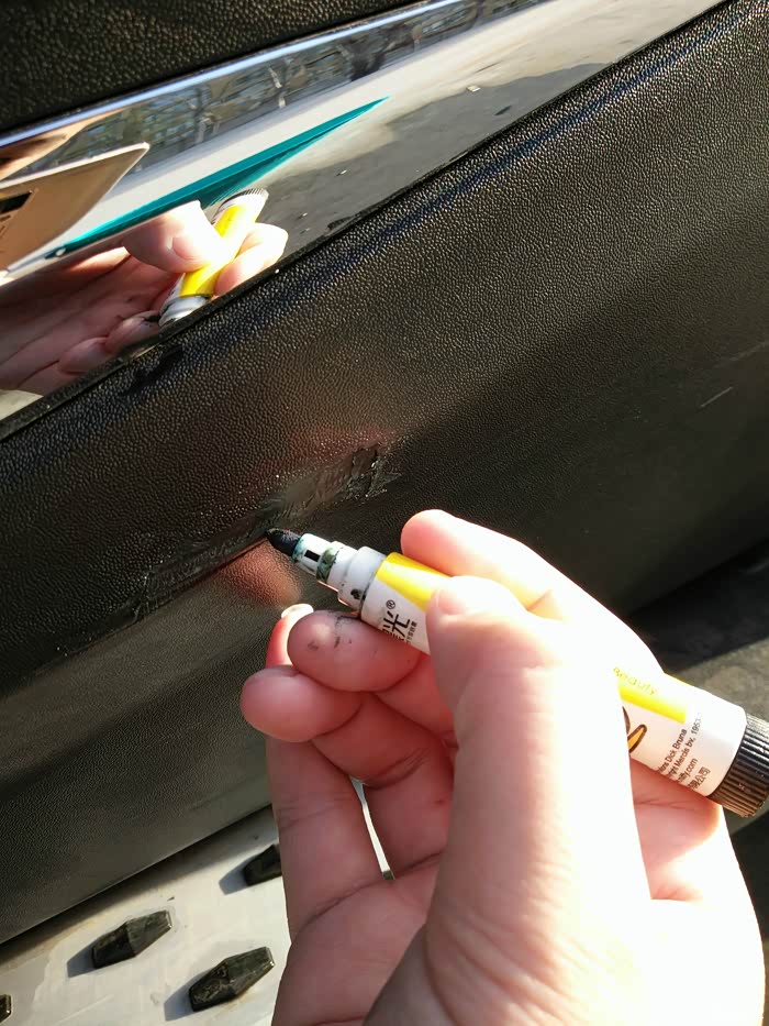 来张近景,老婆吓得顿时六神无主了,我本以为是挂到漆面和金属了,下车一看,乐了,原来是塑料啊,问题不大,回家我自己鼓捣鼓捣。