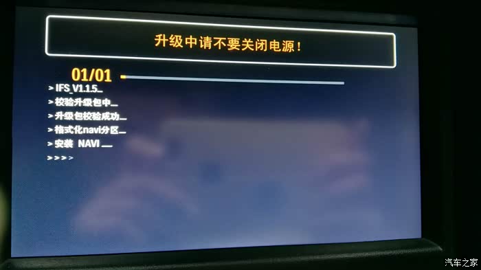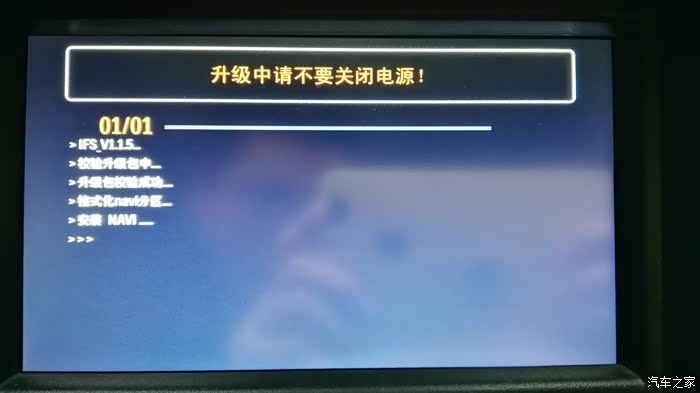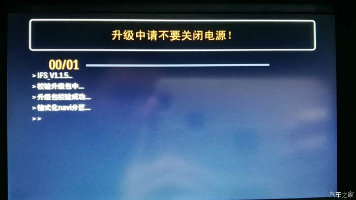 再次强调,自动升级过程开始,千万不要断电。上方00/01后面进度条会慢慢向前走……
