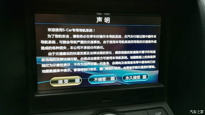就像刚提车第一次打开导航一样,要求做出接受选择,此时我选择永久接受。