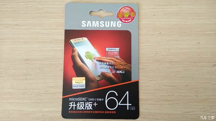 配件1:64G的三星Class10 U3高速读写TF卡,读速100M,写速60M。来自京东商城,价格129元。用于高清视频录像,适用于行车记录仪。