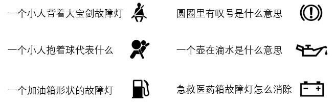 今天,仪表盘上的指示灯随着汽车技术的更新换代不断推陈出新,五花八门的故障灯类型让人眼花缭乱。生活中我们常遇到故障灯亮起的情况,却不知道怎样处理。情急之下大家经常脱口而出一些“千奇百怪”的描述,曾经有个红遍朋友圈的问题是汽车仪表盘上一个小人背着大宝剑是什么意思。