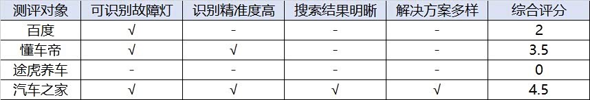 相较于上款App,懂车帝表现出了明显优势:搜索结果反馈的准确率高,且绝大多数内容只针对所识别的故障灯进行解读,很少掺杂其他信息。缺点是结果页反馈文章量较多,说法五花八门,需要用户自己选择和提炼总结有效信息。推荐指数:3星半。