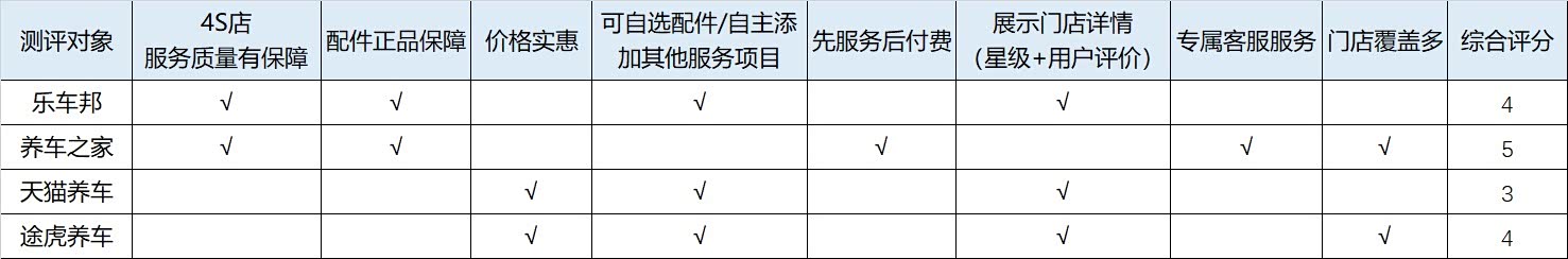经过8个维度的横向评测,我们总结出了各养车App的优劣势(如上表)供大家参考,希望大家可以通过本次测评更加清晰地了解平台服务,最终找到最适合自己的来完成爱车养护,同时享受到最优的服务体验。