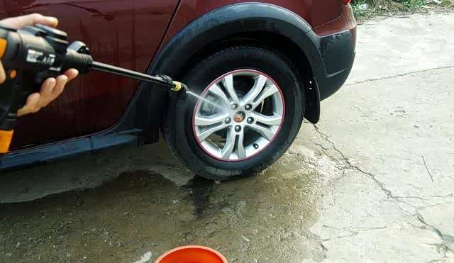 现在洗车机的宣传有一个怪象,就是总拿过百个BAR来炫耀,动辄就是甘蔗切割、木板开洞,我也是服了,好像买了个切割机,难道高压是唯一标准?宝可不敢拿自己的车来开洞,所以对高压如斯的洗车是心有余悸的!但压力不可没!足够清洁的压力是必须的,所以,对这款威克士转到H档0度位置(也是最高压档)进行轮胎、轮毂的清洁,感觉比起那些一喷泥浆就反射你一身的温柔多了,毕竟这款水压峰值也就22Bar,但正常冲刷也是绰绰有余了,除非你的车总往工地跑,水泥什么的可帮不了你了~~~