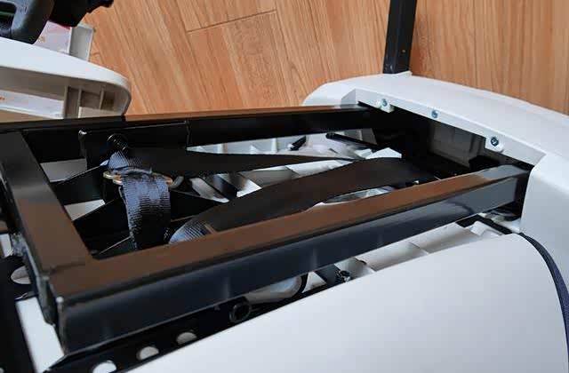 打开座椅后面的护板,可以看到合金碳钢骨架,一直从椅背延伸到了底座下面,通过这样的设计强化了座椅整体的刚性,让座椅的结构更加稳定坚固,当然这也是为什么这款座椅的分量较重的原因。