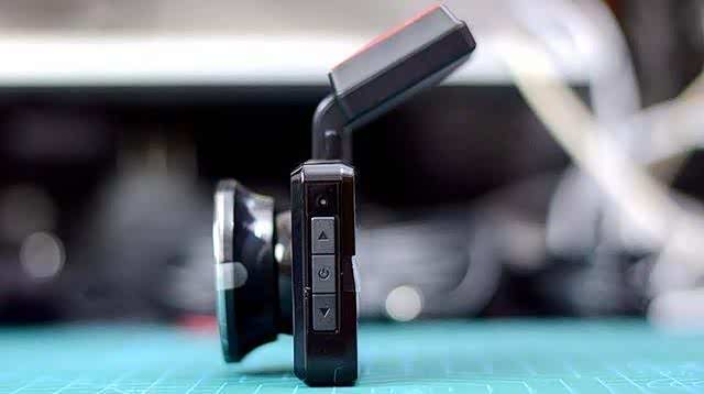 侧面3个按键用于操作设置记录仪,极少的按键却能全面的设置,简单又方便。麦克风孔位于按键上方,用于拾取周围声音,同时也是语音控制命令的采集。