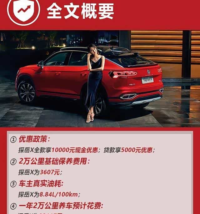 在保养方面,探岳X的保养时间和保养项目均与探岳保持一致,所以探岳X的保养信息我们就以探岳来举例。首保和二保都是在5000公里进行,并且首保免费,而二保之后的保养间隔均在10000公里进行,保养间隔属于较长的类型。