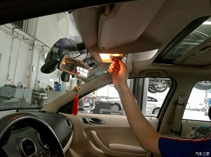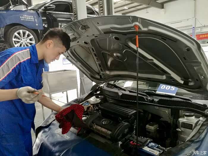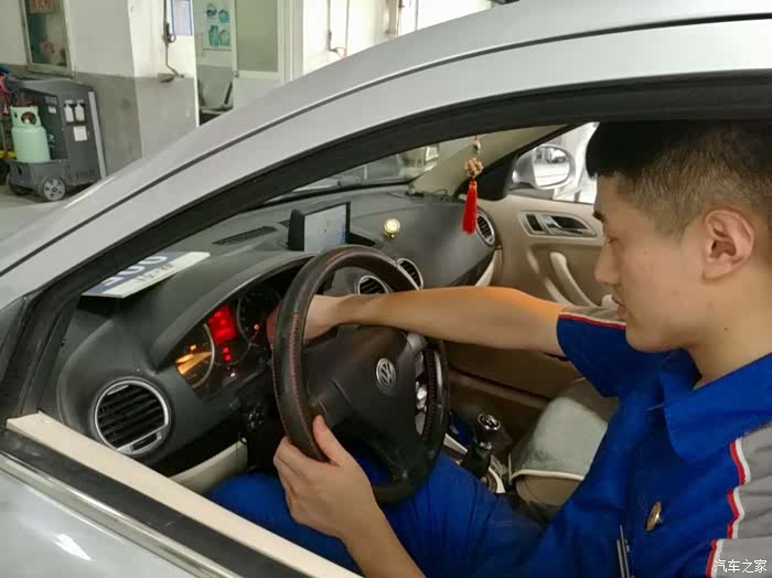 电瓶是今年才换上的,不需要测量,师傅在检查电瓶是否有松动