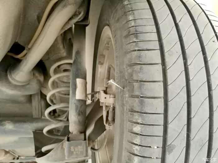 车上的四条轮胎是16年9月换上去的,行驶了8万多公里,磨损并不严重,正面的胎毛还在。但因为这个钉子扎在侧面 那就只好换胎了。也就被迫把左侧的一起换掉(把新胎放在前面)