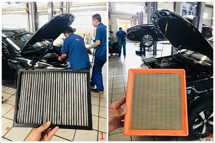 听从了师傅的建议,清洁空调滤芯,更换空气滤芯。上图的空气滤芯对比图的确挺脏的。