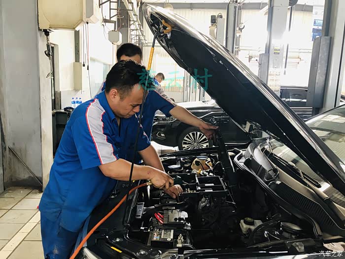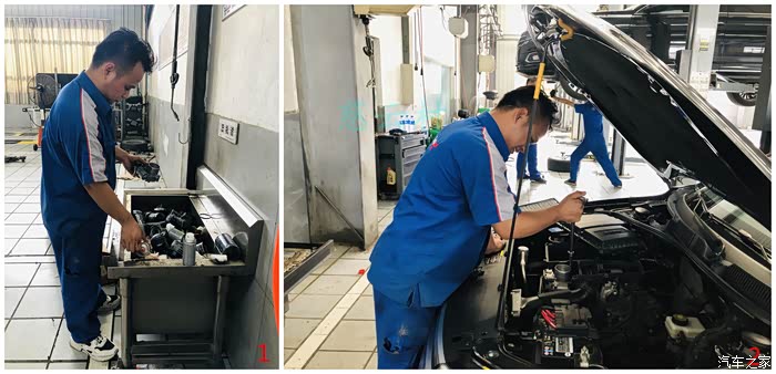 因我自带了空调滤芯,准备换滤芯。 两位师傅分工合作,各自拆空气和空调滤芯。