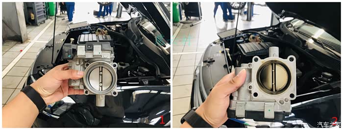拆下的节气门,表面看着还行,里面略微有点脏。