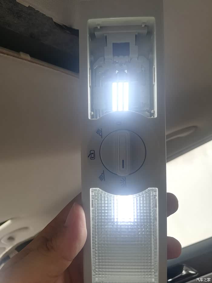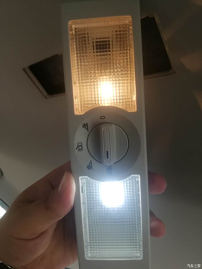 前后阅读灯都更换为LED灯之后,后排因为灯珠多一些,后排更亮一点。