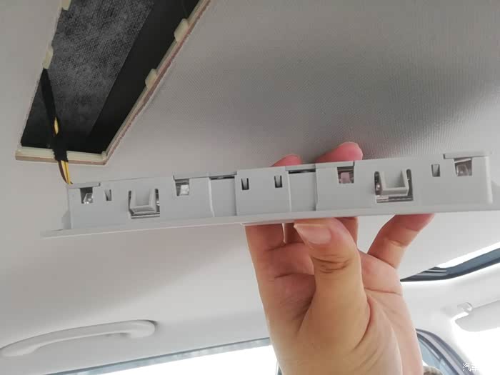 后排两个LED阅读灯安装好了。透明罩壳复原之后卡进后排车顶即可。