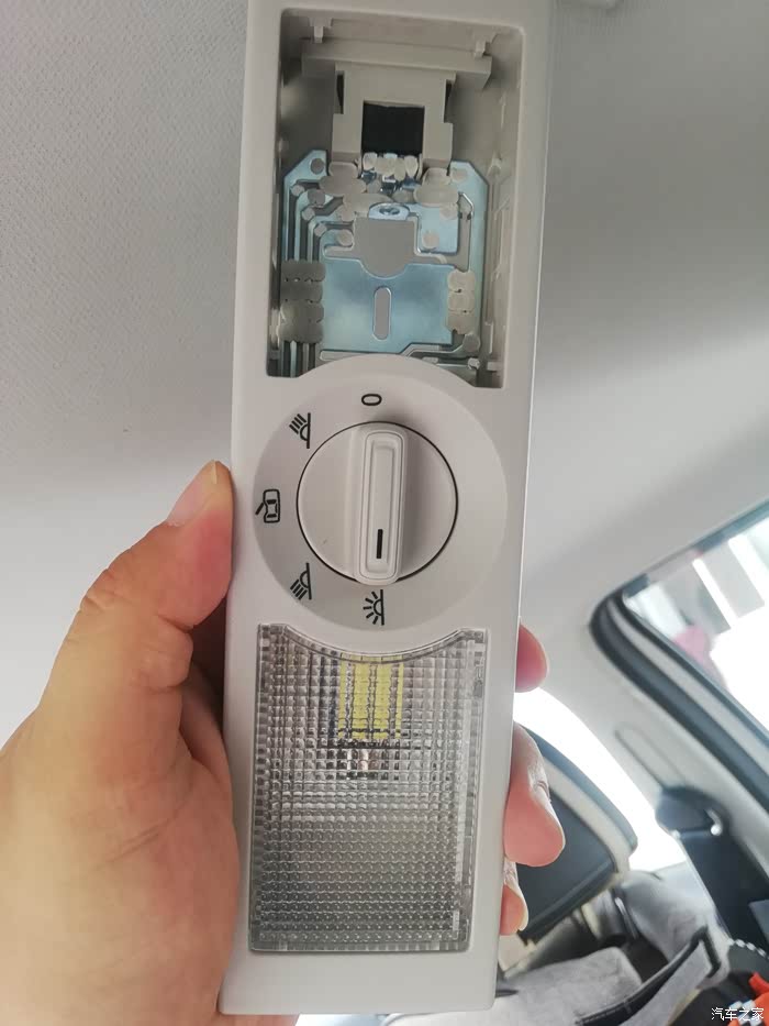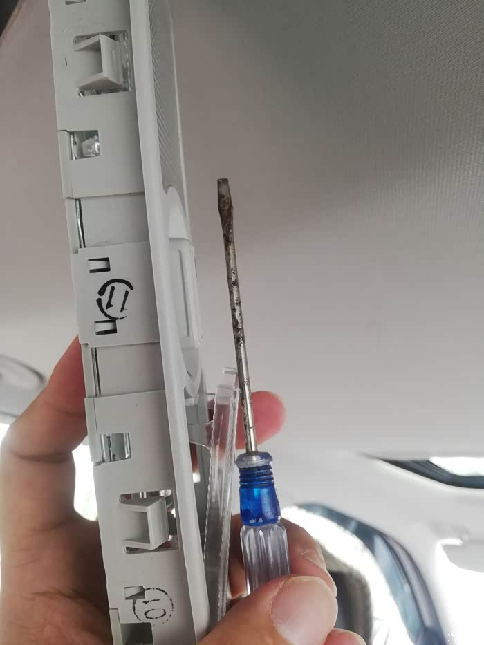 后阅读灯的更换,需要把整个灯拆下来,用手抠下边边,
