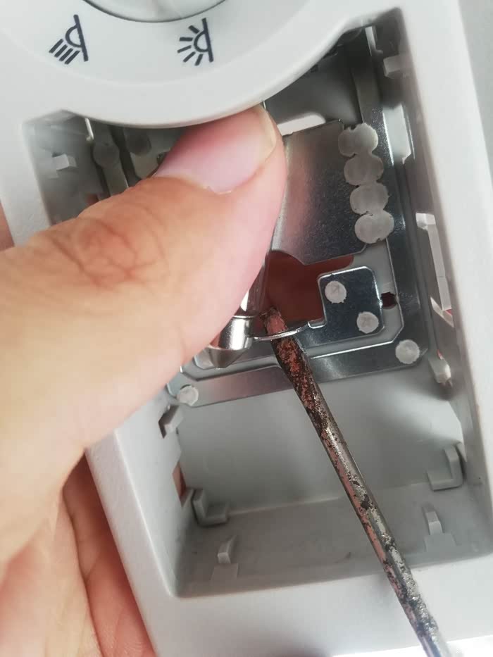 再抠下另一边,拆下来之后可以看到是塑料卡扣。
